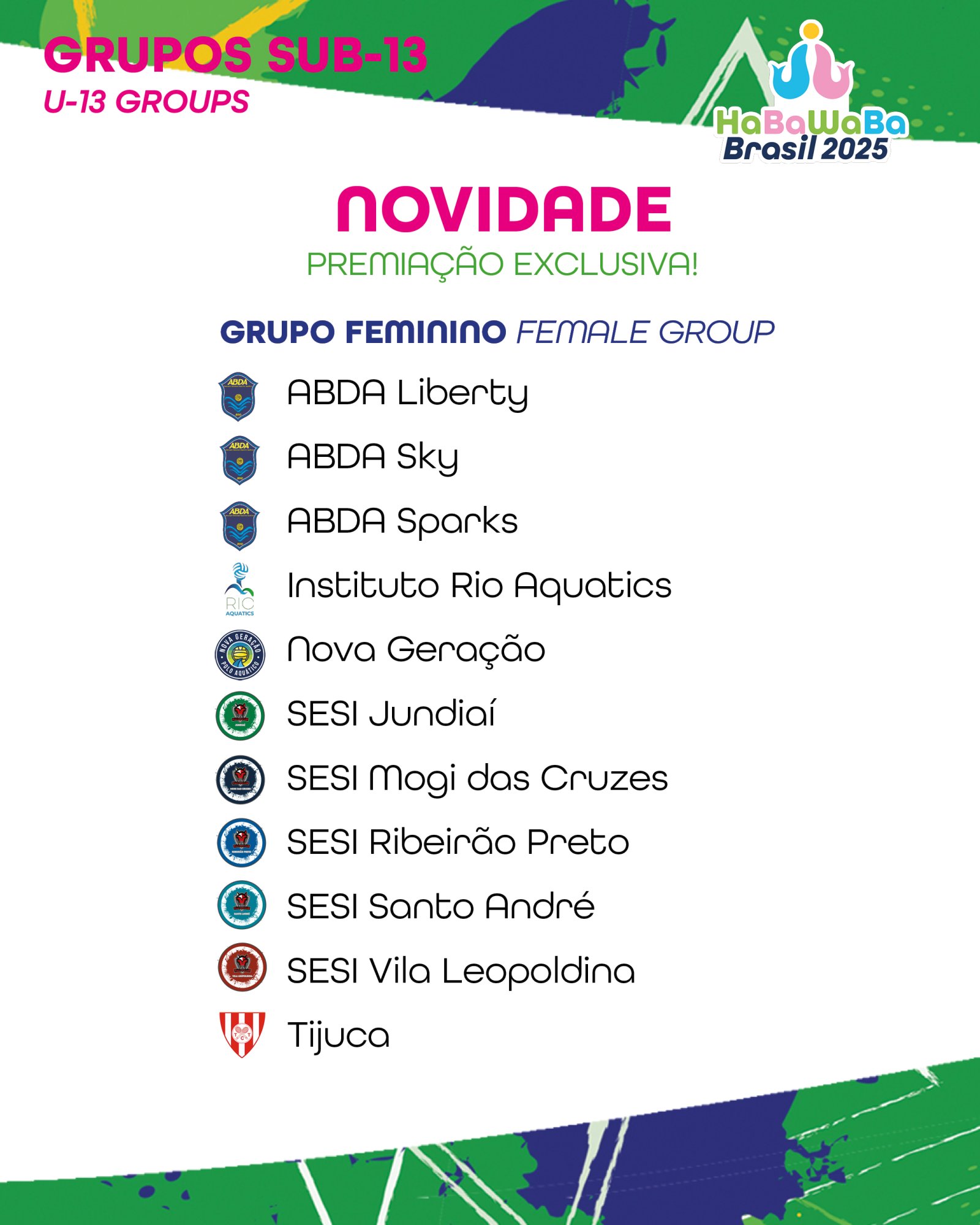 A grande inovação desta edição é o campeonato exclusivo para equipes femininas sub-13, que contará com 11 times e premiação independente, marcando um passo importante na valorização e no incentivo à participação das meninas no polo aquático.